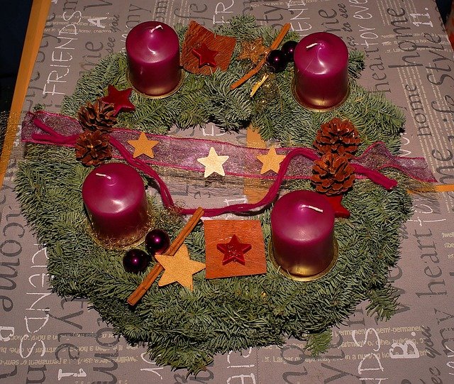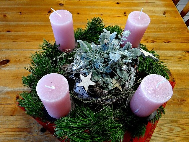 A keresztény hagyomány szerint az adventi koszorún három lila és egy rózsaszín gyertya jelképezi a várakozással teljes bűnbánatot, elmélyültséget, és reményt.